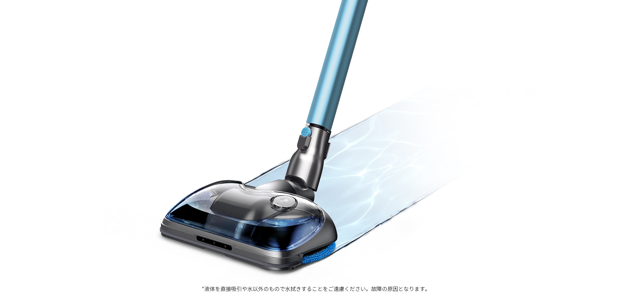 T12 Home Rinseは、従来の掃除機や回転式のモップクリーナーではなく、掃除機とモップを組み合わせた2in1のクリーナーです。前方の吸引口でホコリを吸い取り、後方のクリーニングクロスが高速回転しながら床を水洗い。吸引と水拭きでお部屋をさらにキレイにできます。
